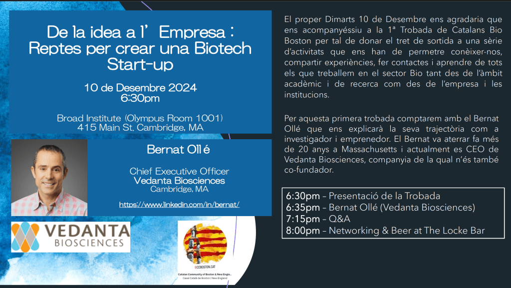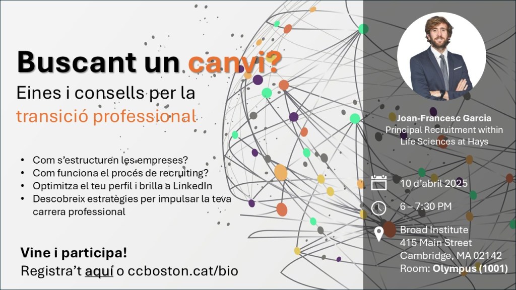 L’ecosistema de ciències biomèdiques a Boston és molt potent i molts catalans venen aquí per treballar en aquest àmbit. Si ets un d’ells i vols estar al corrent del que fa la comunitat a nivell professional, omple aquest formulari.