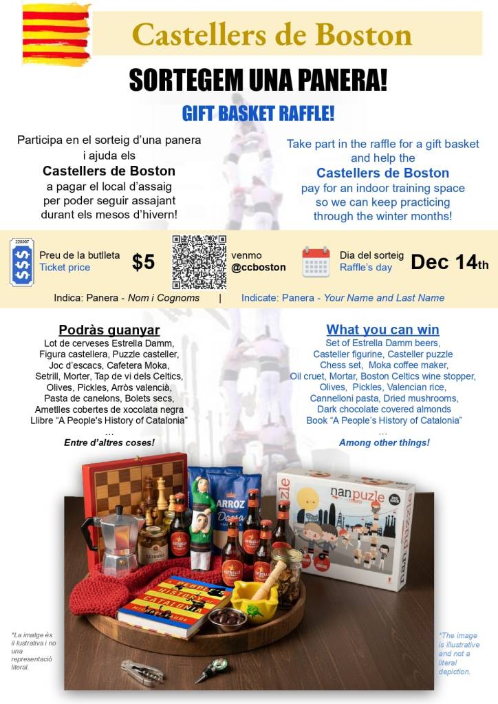 - 11:00 a 13:00: Assaig i sorteig de panera amb els Castellers de Boston al gimnàs. Per a més informació sobre la panera dels Castellers de Boston, trobareu el gràfic més avall. Gratuït per tothom.